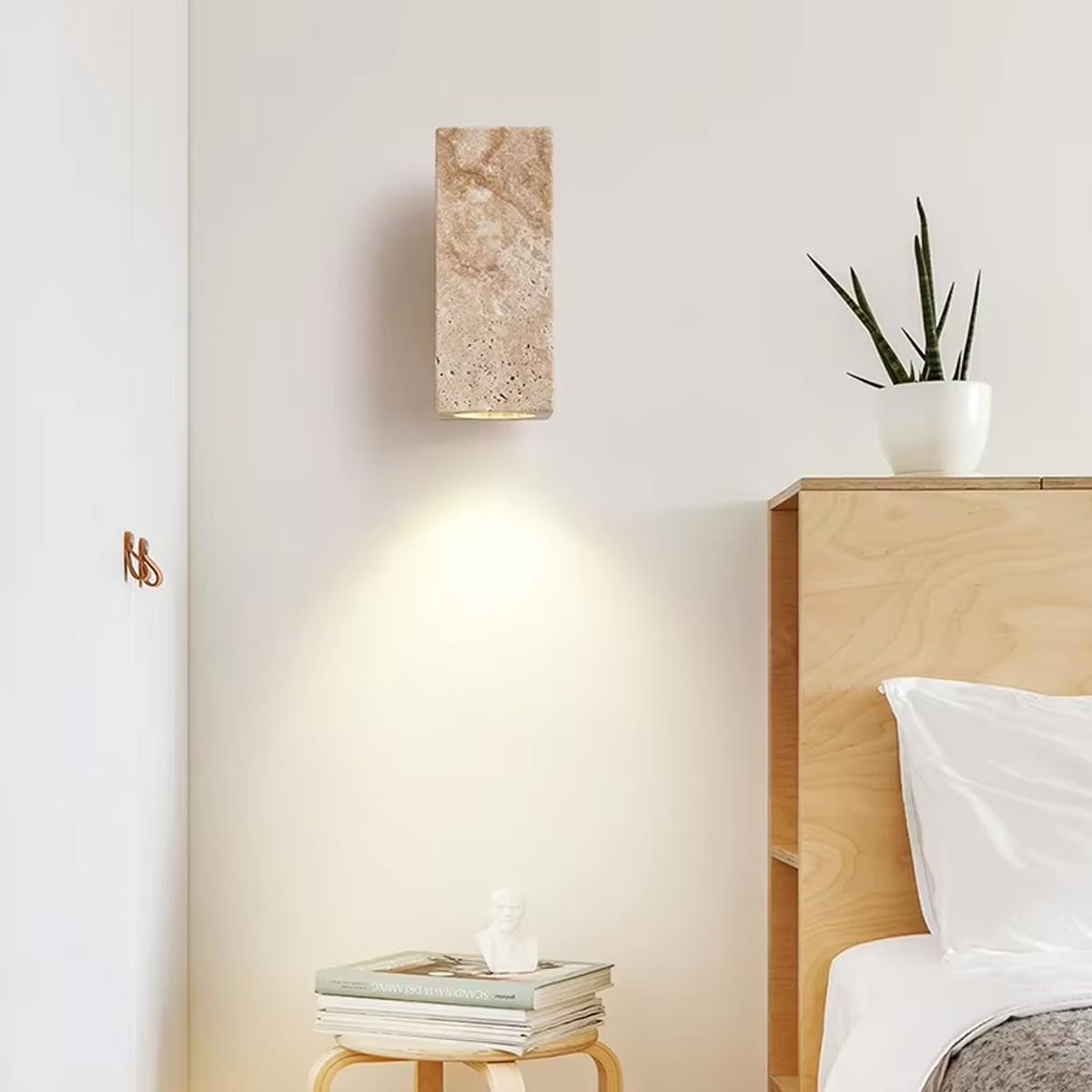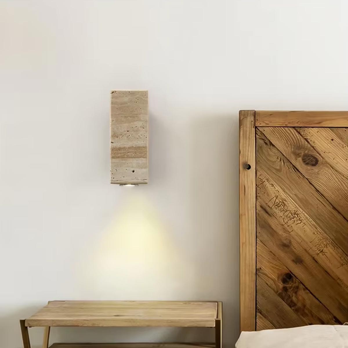 Applique murale en travertin et bois, rectangle – H16 cm